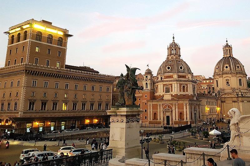 Что еще можно добавить? Рим есть Рим, а Пьяцца Венеции одна из его главных площадей. Место, наполненное Историей и историями. Один из символов Рима, который, безусловно, стоит увидеть. Покидая ее в сумерках, мы бросаем прощальный взгляд на внушительный монумент Витториано. Если в солнечный день каменный колосс сияет собственным светом белого мрамора, то ночью он приобретает волшебный вид благодаря виртуозному освещению. Нам пора. А завтра другие туристические достопримечательности ждут нас.